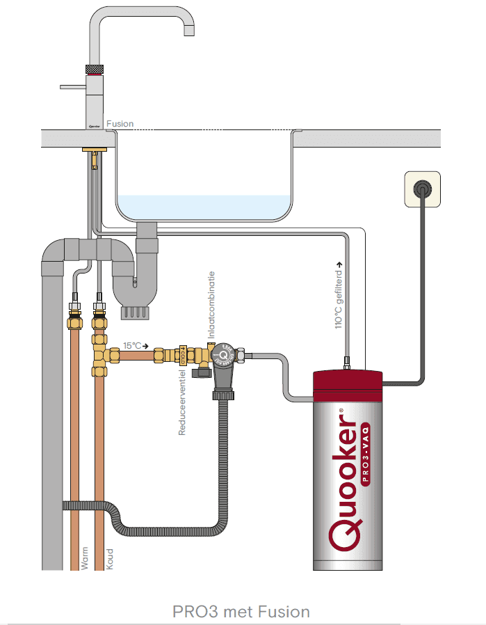 Quooker Cube· heeft geen extra water aansluiting nodig.