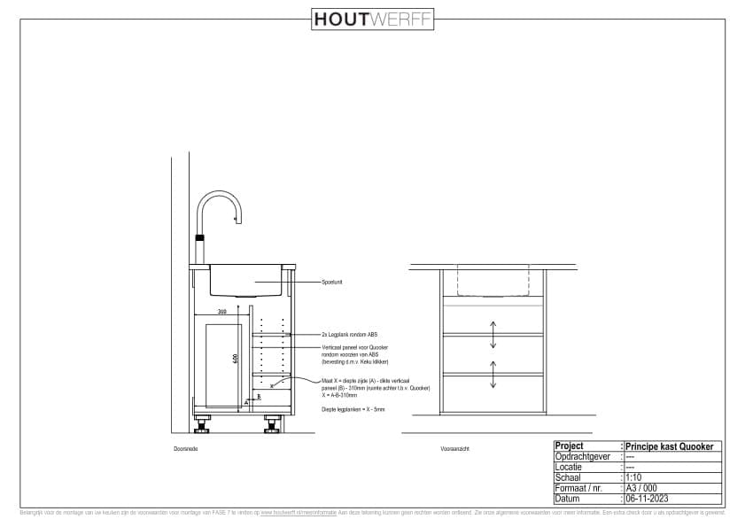 Veilig en verwarmd: De montageplek moet veilig afsluitbaar en verwarmd zijn (minimaal 10 °C). Tijdens montage mogen geen andere werkzaamheden plaatsvinden. Het ontwerp of onderdelen van de keuken kunnen niet worden gewijzigd tijdens de montage.